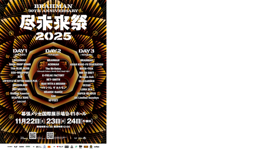 BRAHMANを含め、初日11組、2日目と3日目は10組が登場します。